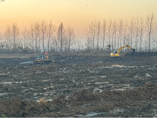 冬闲人不闲,田畴焕新颜。1月10日,潜江市2025年高标准农田建设项目(龙湾镇新建片)第五标段施工现场机器轰鸣,挖掘机挥舞铁臂平整土地,推土机穿梭压实路面,施工人员抢抓晴好天气加紧作业,龙湾镇寻湖村六