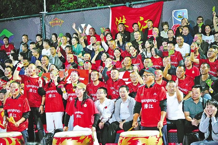 2025湖北省全国百强县篮球联赛,潜江球迷在现场加油助威。 (湖北日报通讯员 关洪磊 摄)