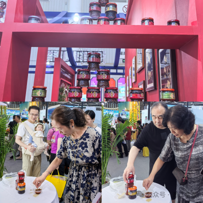 尝香思酱品的试吃区,宛如磁石般吸引着过往人群的目光与脚步。空气中弥漫着酱料独有的醇厚香气,让每一位路过的参观者都不由自主地放慢脚步,循香而至。一位潜江游客跟她朋友介绍说:“这是潜江最好吃的酱”。