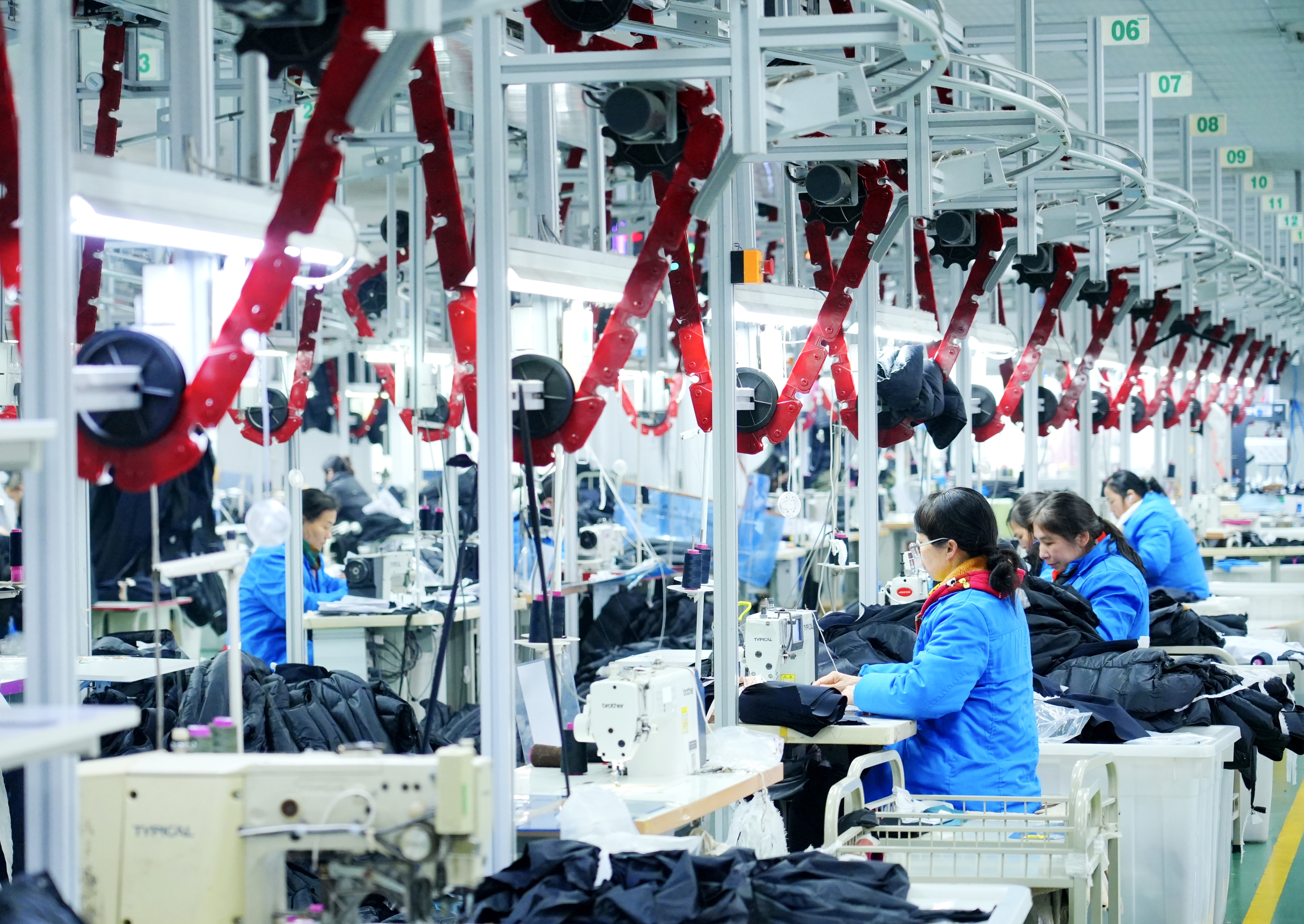 潜江新闻网讯(潜江市融媒体中心记者 关洪磊)2月1日,潜江比帆制衣智能车间内,智能吊挂系统高效运转,工人与先进设备协同作业,高端户外服装加速成型。
