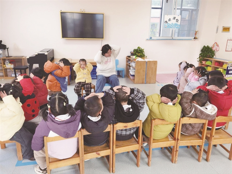 竹根滩镇中心幼儿园组织开展防震应急疏散演练