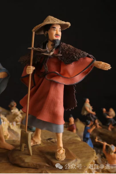在艺术表现上,作品采用三角形构图,以大禹为中心构建透视关系,32 个人物形象与山石、河流等环境元素错落呼应,色彩搭配协调统一,既展现了潜江面塑 “揉、捏、剪、压” 的传统技法精髓,又融入了现代审美理念,人物神情栩栩如生,场景布局层次分明,将面塑艺术的立体感与叙事性完美结合。