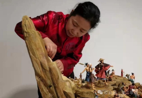 这件获奖作品重达 10 公斤,规格为 85×46×56 厘米,是潘凤娥耗时 7 个月精心打造的原创力作。作品以三皇五帝时期大禹治水的历史传说为蓝本,生动再现了大禹带领百姓 “三过家门而不入”,以智慧和顽强意志治理黄河水患的壮阔场景,传递出大公无私、众志成城的 “中国精神”。